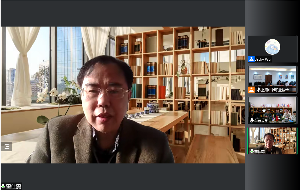 11月23日上午10点(韩国时间11点),上海中侨职业技术大学与韩国白石大学通过远程视频会议形式进行合作办学洽谈会。上海中侨职业技术大学校长霍佳震、副校长刘淑芸、国际交流处处长王凌、国际交流处副处长胡雅楠、韩国白石大学副校长李在浚、国际交流处处长金范埈、国际交流处副处长崔世运、国际交流处主任崔光彬等出席了会议。洽谈会由副校长刘淑芸主持。