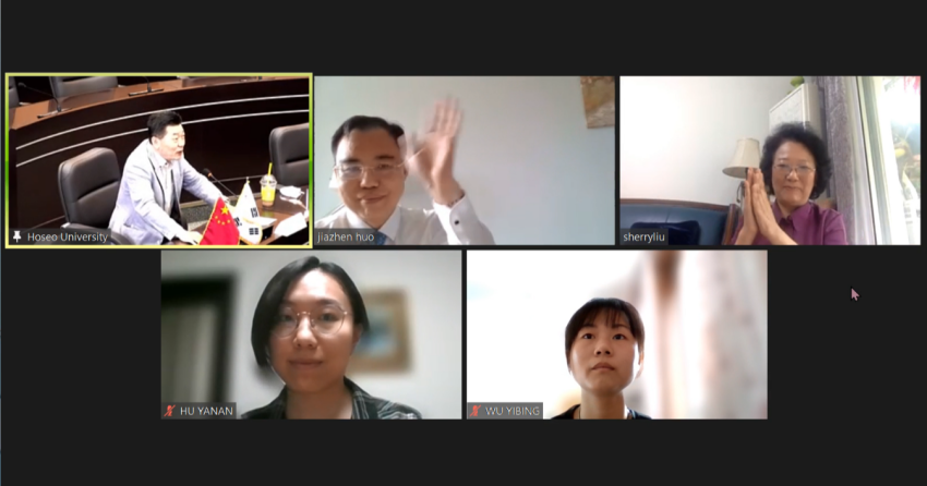 6月3日上午9点30分(韩国时间10点30分),上海中侨职业技术大学与韩国湖西大学通过远程视频会议形式举行合作签约仪式。上海中侨职业技术大学校长霍佳震、副校长刘淑芸、国际交流处副处长胡雅楠、国际交流处职员武怡冰、韩国湖西大学本常务副校长朴雪豪、国际交流与合作处副处长金是用、国际交流与合作处部长崔龙善、留学生商谈中心主任陈国华教授、国际交流与合作处中国业务负责人崔丰硕、上海联络处代表崔光彬等出席了会议。签约仪式由副校长刘淑芸主持。