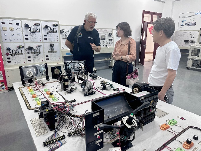 在智能制造学院的新能源汽车实训室,Jean-Claude Ruano-Borbalan教授与教师们深入交流,共同探讨新能源汽车领域的未来发展趋势。在信息工程学院的大疆无人机实训室,他感叹中侨大学设备先进,理念创新,可以激发学生对于该领域的浓厚学习与研究兴趣。