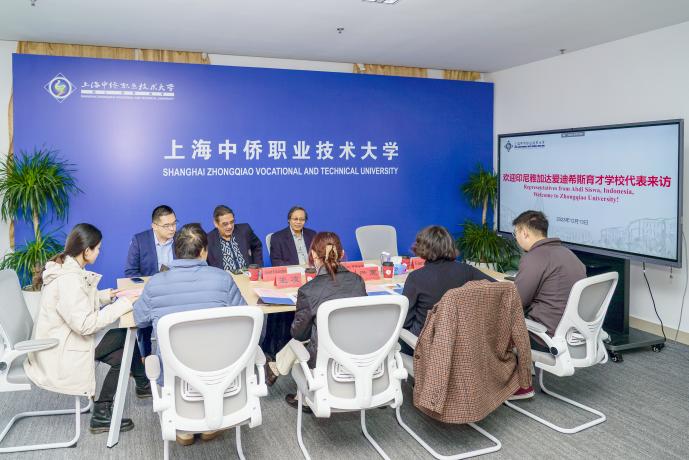 2023年12月13日上午9:00,上海中侨职业技术大学与印尼雅加达爱迪希斯育才学校在中侨大学图文信息楼504会议室举行会议。出席会议人员有:上海中侨职业技术大学国际教育学院院长严蕙、国际教育学院副院长王凌、Abdi Siswa基金会执行主席Jusuf Iskandar、董事Ferry Widagda、国际部中国区顾问Leo Hou 。