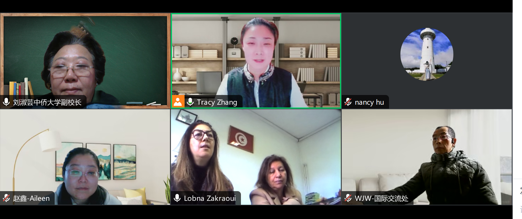 1月23日下午,我校与突尼斯UTM大学举行线上会议,就中突国际教育合作和在突尼斯UTM大学开展中文教育进行会谈。