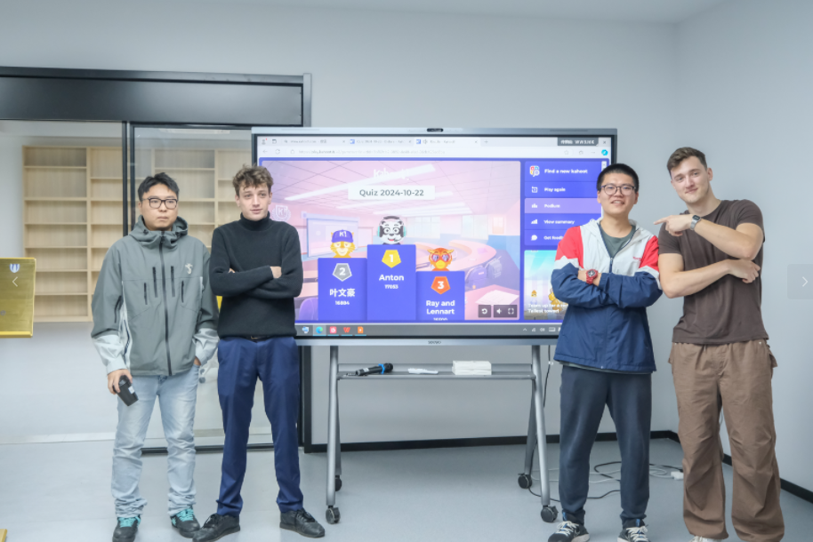 首期德语角活动中,通过开展Kahoot(趣味互动问答)游戏,中德双方学生通过趣味的方式,对对方国家与文化有了初步的认识和了解;围绕Brainstorm(头脑风暴),大家畅所欲言,表达自己对德语角的期待和发展方向。活动中,也有德国学生大胆踊跃,现场讲说德国谚语,为在场参加人员营造了身临其境的氛围。与此同时,现场学生分享了自己参与德国学生一起上课和交流的美好瞬间。