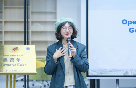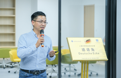 2024年10月22日,上海中侨职业技术大学德语角揭牌成立仪式暨首期德语角活动拉开帷幕。校长助理兼国际部部长严蕙、新能源及动力技术研究所所长周苏、国际教育学院副院长丰玉强出席活动现场。