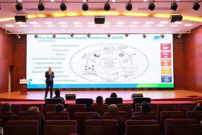 斯特凡教授在讲座中分享了他25年的对华合作经验,强调了跨文化理解的重要性,并提出德国工科教育如何引导对科学的探索和精进。他通过介绍维尔道应用技术大学的教学模式,强调了实践与理论的结合,阐述了在工程教育如何培育工业4.0智能化时代的人才,“以人为中心的变革”理念,为在场师生带来新启发。