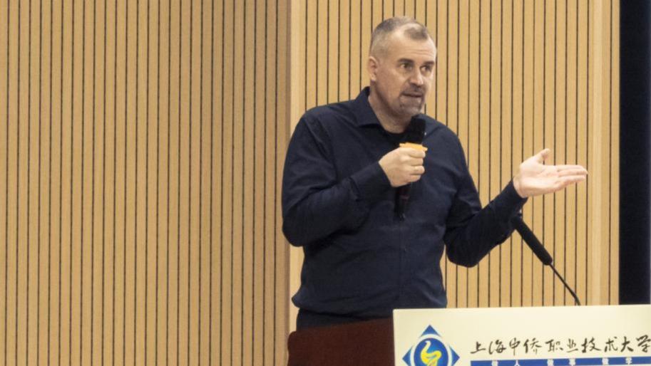当天,Martin Adam校长为我校师生带来题为“从包豪斯到人工智能时代”的专题讲座。讲座以包豪斯建筑理念与设计思想为切入点,系统梳理现代设计的发展脉络,并结合前沿案例,分享人工智能在当代设计领域的创新应用与实践探索。讲座兼具历史纵深感与时代气息,进一步拓宽了中侨师生对设计发展趋势与人工智能赋能创新的认识。互动环节中,同学们围绕设计思维、技术应用、行业前景等话题踊跃提问,现场交流深入热烈,学术氛围浓厚。